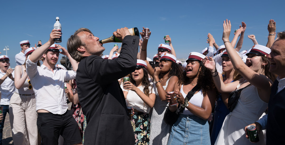 The film is shot through with an empathy that holds it back from cartoonishness. Mads Mikkelsen plays Martin, a dead-eyed history teacher whose marriage and job are on the brink of crumbling. He and his buddies Tommy (Thomas Bo Larsen), Peter (Lars Ranthe) and Nikolaj (Magnus Millang) are jaded middle-aged men, but they’re also capable of remarkable tenderness. When Martin tears up during dinner, the other three begin shimmying awkwardly at the restaurant, reminding their friend of his youthful days as a jazz ballet dancer. The next morning, Martin decides to test a hypothesis floated by Nikolaj: that the body’s natural alcohol content is a couple drinks too low. He takes a swig of vodka before class, and suddenly, the listless teacher of previous scenes turns into an electric raconteur, regaling his students with tales of Winston Churchill’s alcoholism.